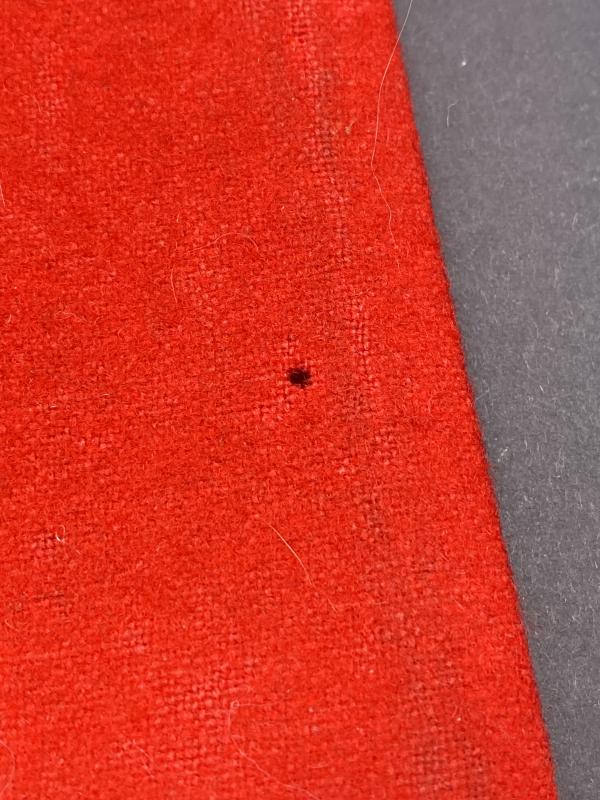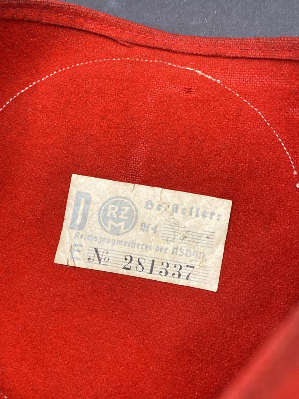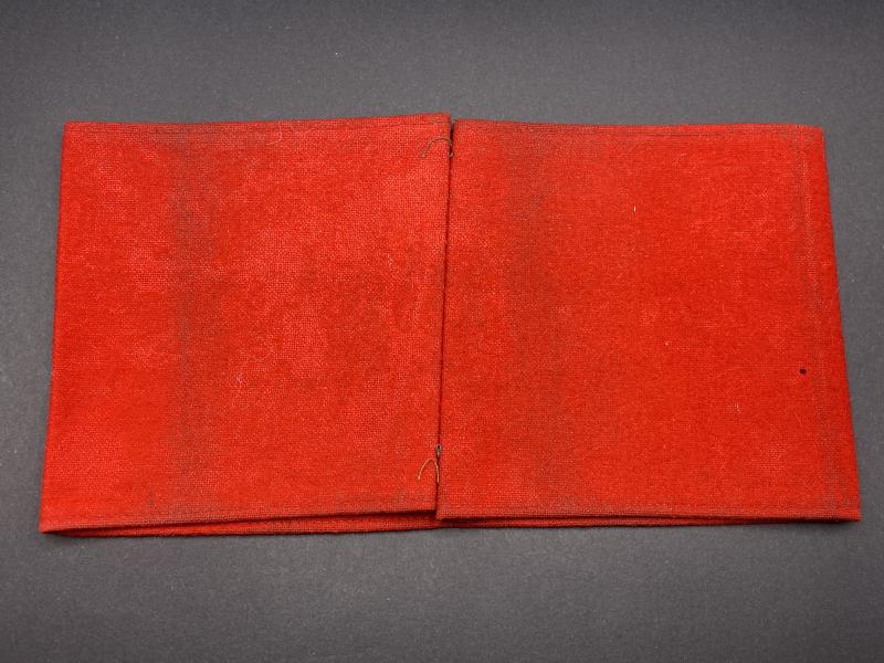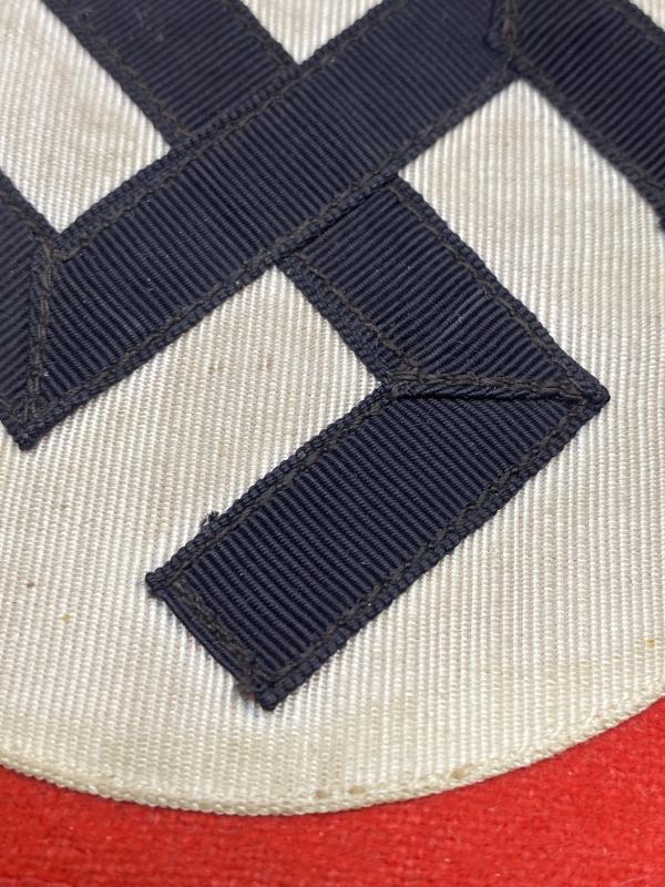 Original nicely worn three piece NSDAP members armband complete with paper label still present inside. Only one tiny moth nip on the reverse.