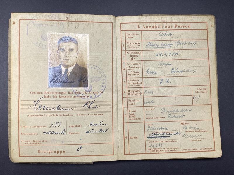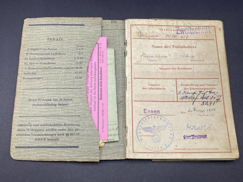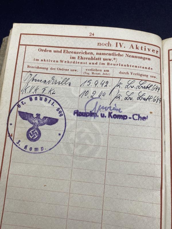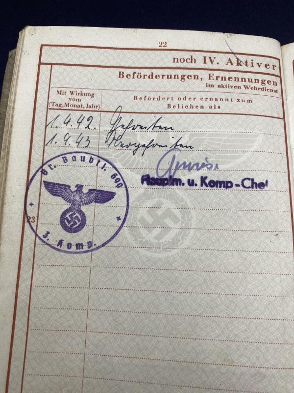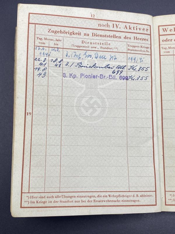 German Army Wehrpass Hermann Ana Pioneer Battalion 699