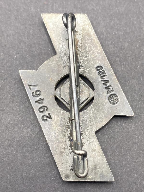 Original Third Reich period DJ Leistungen badge in silver maker marked M1/120 Wilhelm Deumer with issue number 29467.