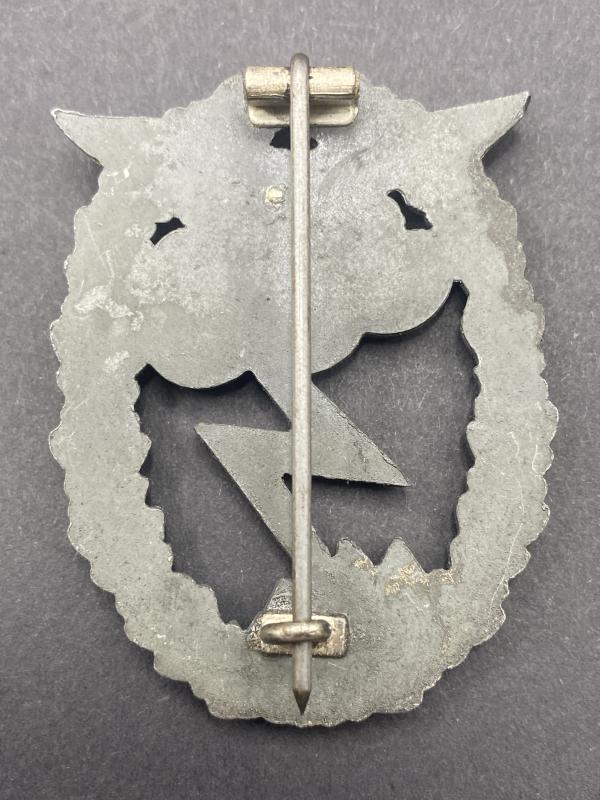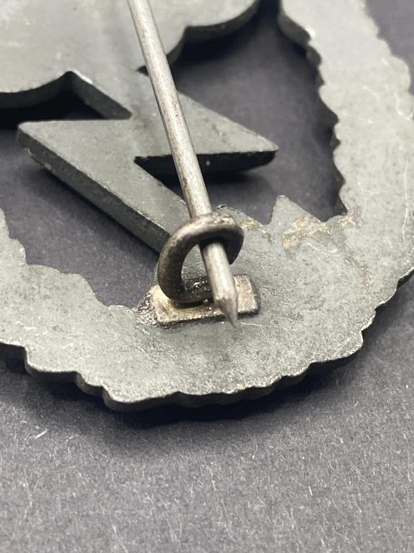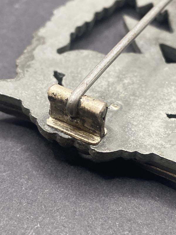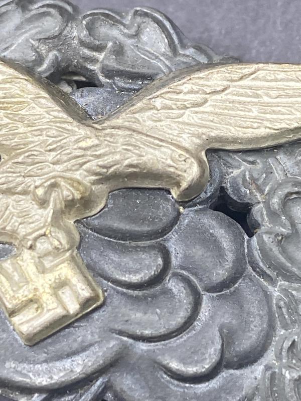 Original two piece zinc Luftwaffe ground assault badge made by JE Hammer. Textbook example in good condition.