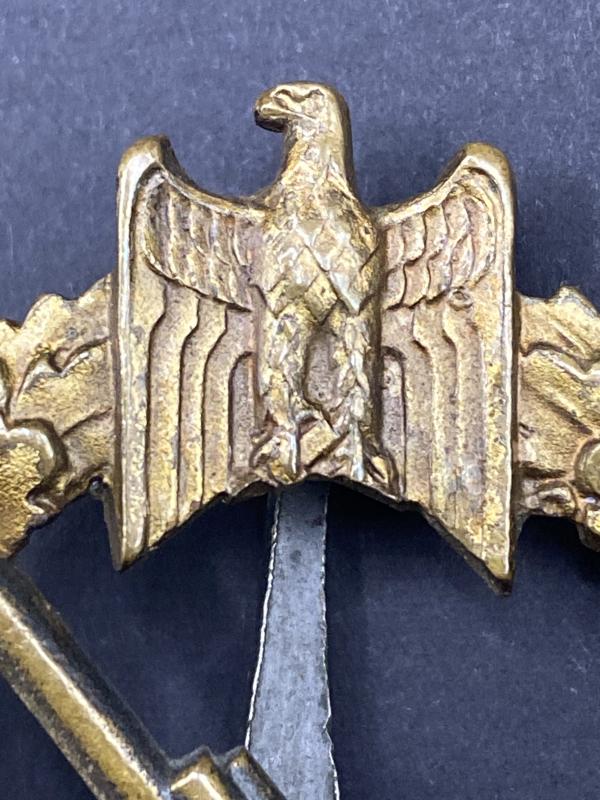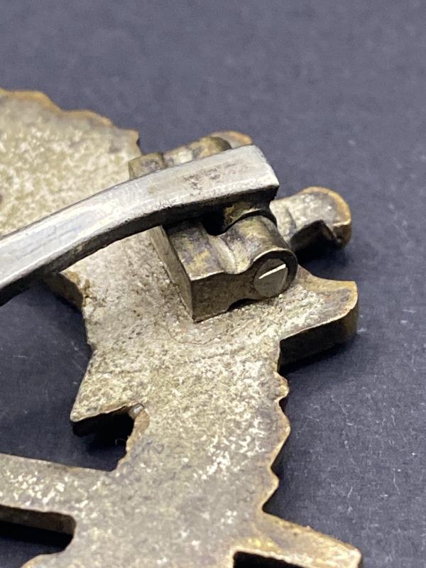 Original Tombak C.E.Juncker made Kriegsmarine Coastal Artillery badge. A high amount of finish remaining. Swastika removed post 1945. A high quality badge from one of the most prestigious of makers.