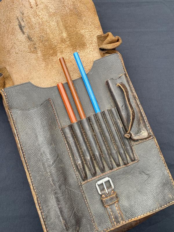 Original WW2 German army officer or NCO black leather Mapcase as used by the Army and SS. Map case is in good used condition, complete with some period pencils. No date or makers stamp visible.