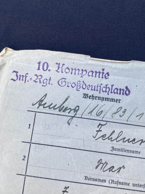 10.Kompanie Inf.Rgt.Großdeutschland Soldbuch Papers Obergefreiter Max Fehluer