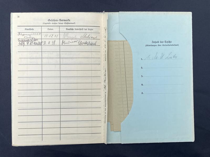 Original German army health/ medical record book. Plenty of entries inside. No research has been done on the man or his unit.