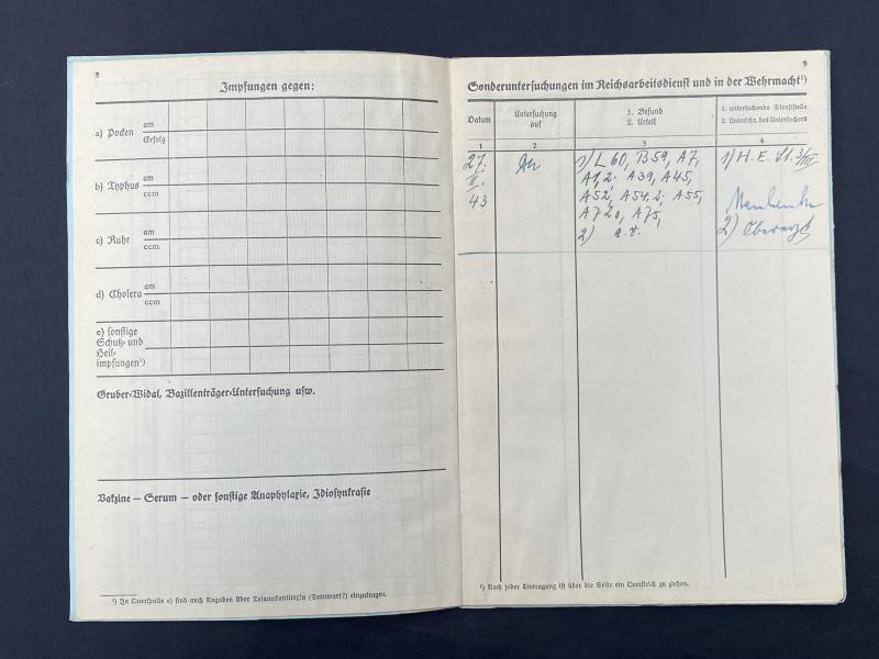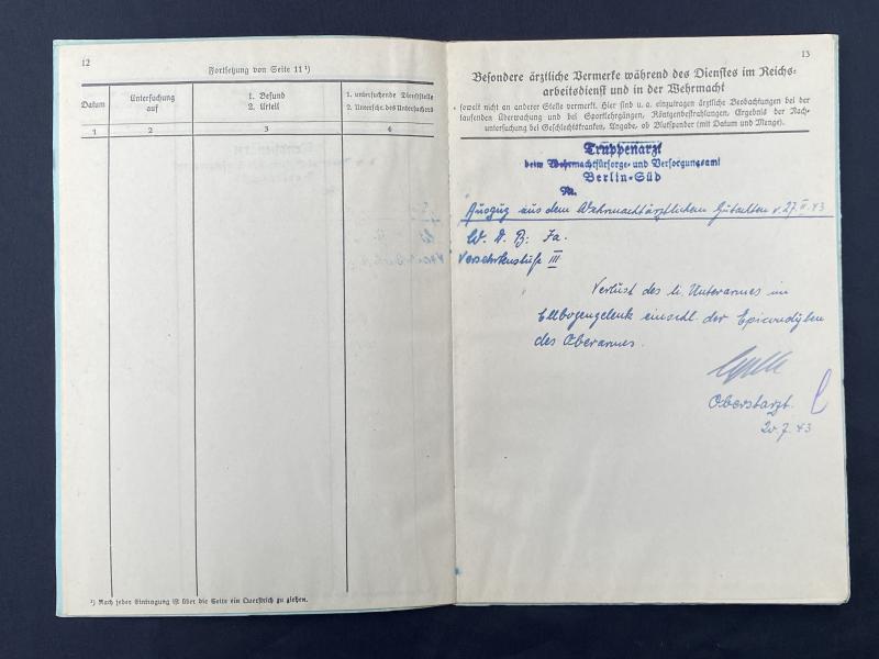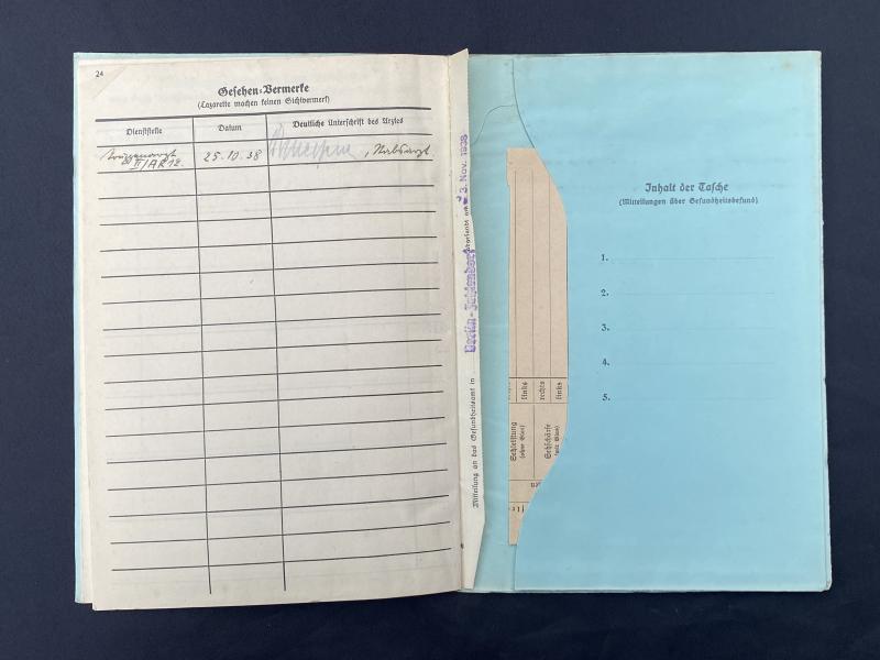 Original German army health/ medical record book. Plenty of entries inside. No research has been done on the man or his unit.