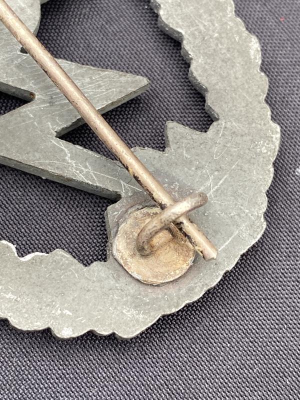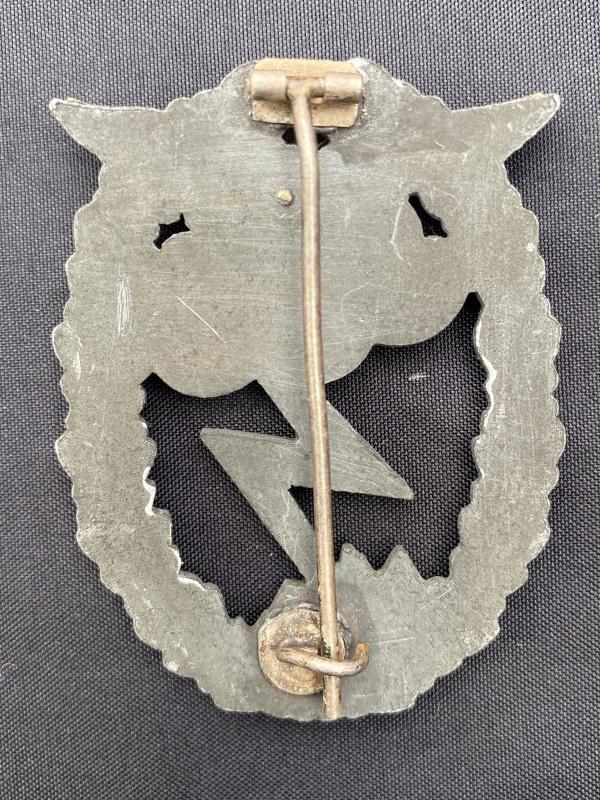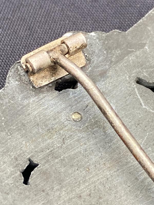 Original JE Hammer design Luftwaffe ground assault badge. Award in good condition with typical features of this manufacturer. Hardware on the reverse has been replaced. It’s unknown wether this was done wartime or post war however considering all parts of the JE Hammer badges were soldered separately, they notoriously broke far easier than many of the other designs that included cast fixings.