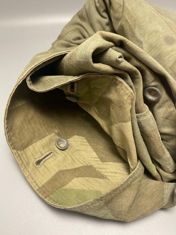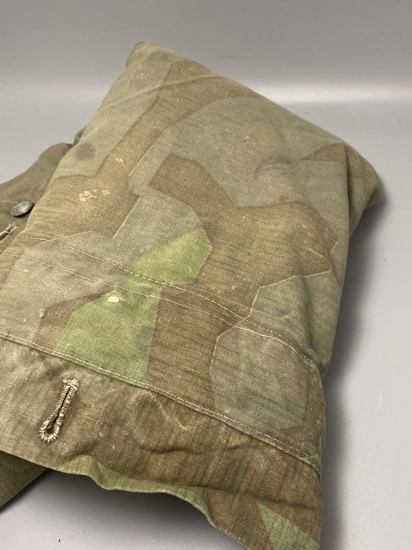 Original WW2 German army M31 Splinter zeltbahn shelter quarter. Almost all, if not all the buttons remain in place. Some small holes present. A really nice field worn zeltbahn. No stamps visible.