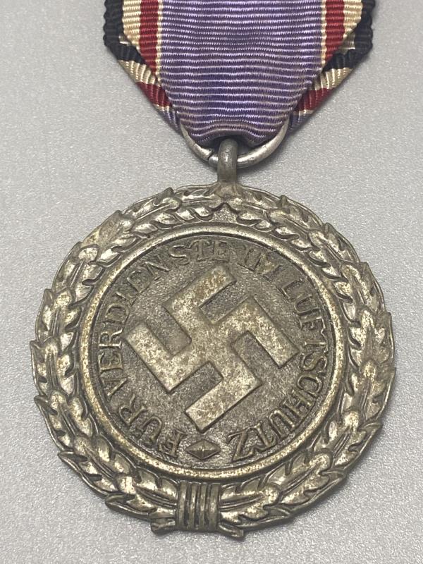 Original Luftschutz air defence service medal complete with ribbon, award maker marked the number “10” for Foerster & Barth.