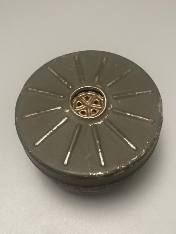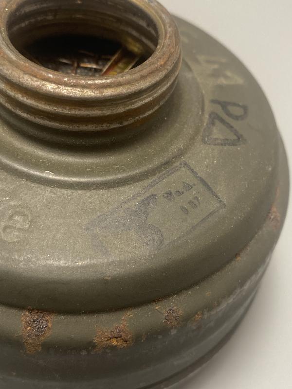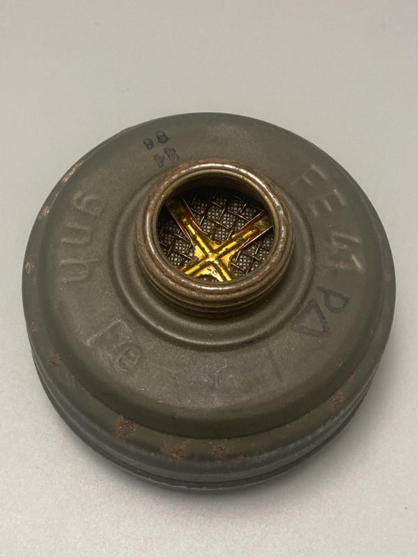 Original German army FE41 gas mask filter. Majority of the original paint remaining. WaA marking present.