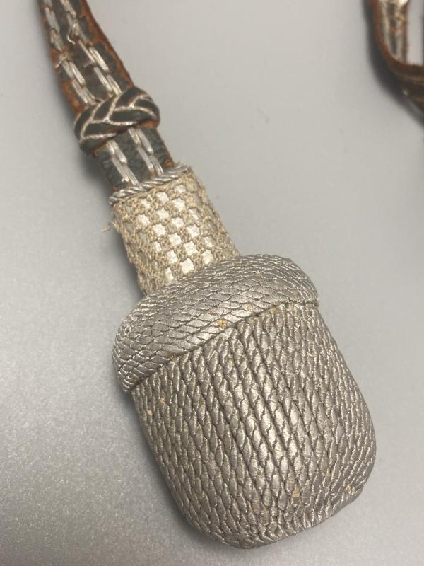 Original WW2 Knott for the German officers dress sword. Made of bullion wire and leather. Two repairs present, apart from this a nice useable example.
