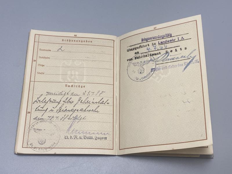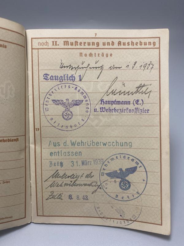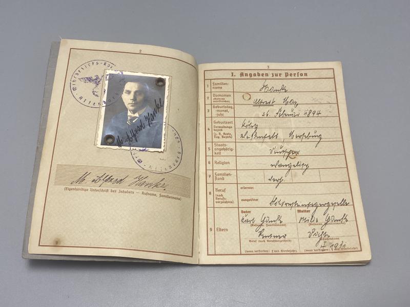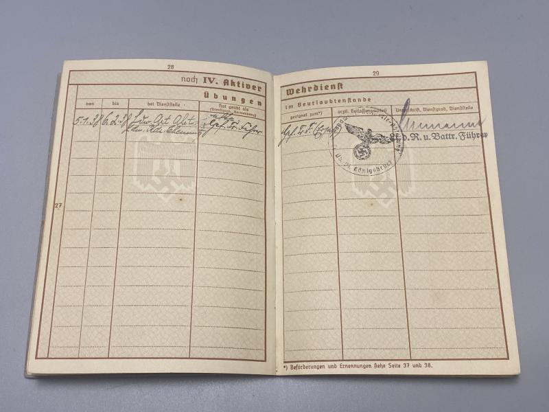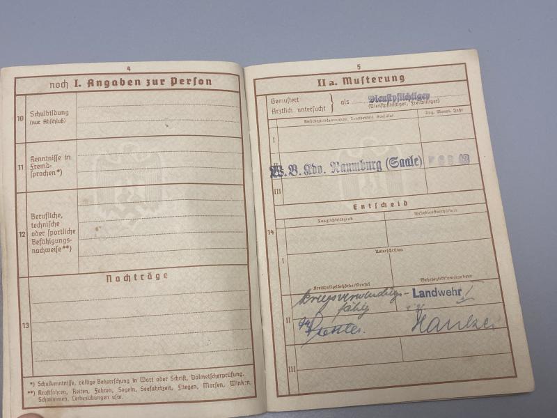 Original early German army Wehrpass to Alfred Hanke of the Landwehr. Active service noted in 1938 as well as WW1 service and promotion to Unteroffizier in 1920.
