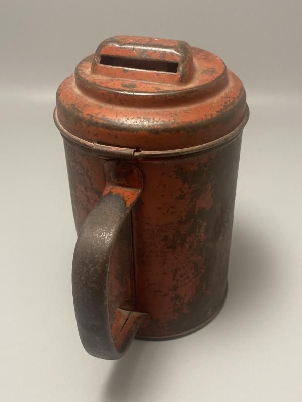 Original WW2 German Winter Hilfs Werk Nederland collection tin. Introduced by Artur Seyss Inquart these collection tins were issued in the Netherlands during the occupation in aid to help feed and clothe the people of the occupied land. The tin has the majority of the original red paint, with the WHN mark on the front (German variants marked WHW). The lid on the top has a hole for notes and also a coin hole. In good overall condition. Serial number present on the bottom.