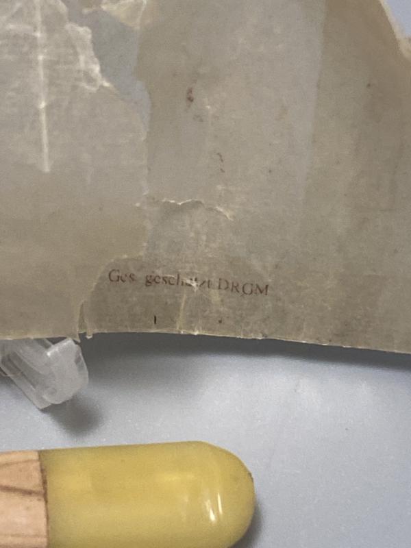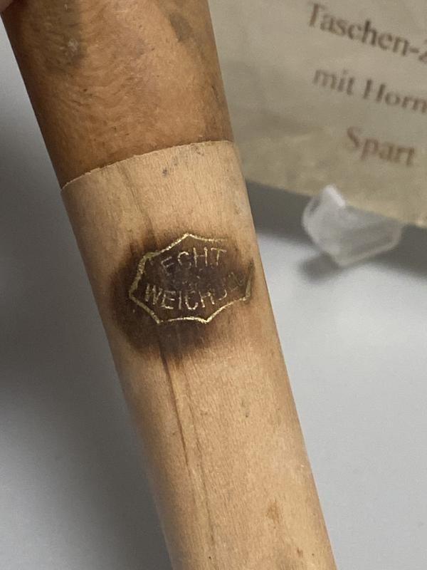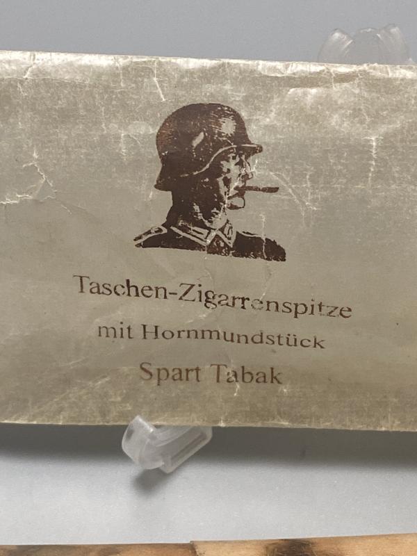 Original WW2 period German cigar holder, well made and maker marked. In good condition. Complete with grease proof paper packet. Paper pack Ges.Gesch DRGM marked. Cool unusual piece.