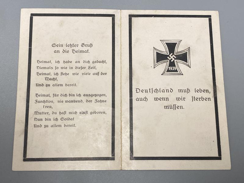 Original WW2 German death card to Uffz. Heinz Schmidt of Feld division Hermann Goering. Killed in action 24th October 1943, Russia.