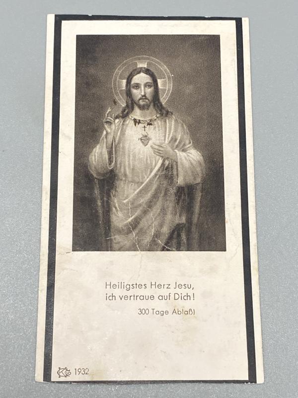 Original German paratroopers death card to ObGefr. Baumann. Killed in action 29th March 1945 in Oberhausen- Osterfeld, Rhineland.