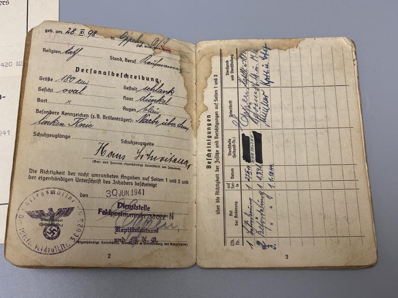German Kriegsmarine Soldbuch Signalman Hans Schwittalla