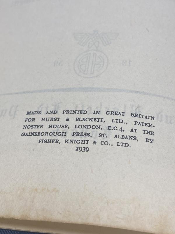 Original 1939 print of Adolf Hitlers “Mein Kampf” published by Hurst & Blackett in English for the British market. Book is in reasonably good shape. All pages are present. No dust jacket is on the book as very few survived. A nice original copy not oftenly found in English due to reasons restricting the sales and ownership on these books during WW2, therefore it remains fascinating that it survives.