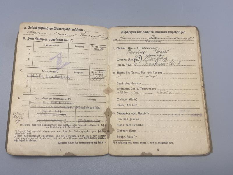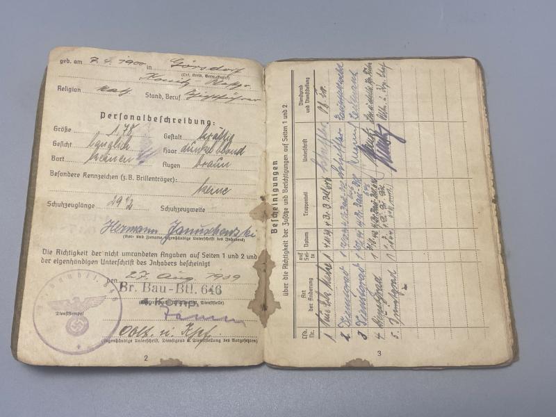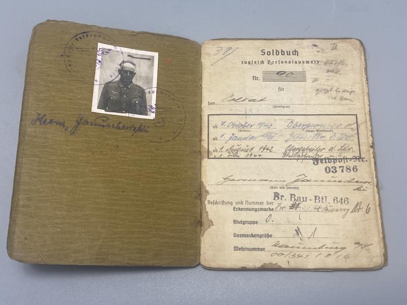 German Army Soldbuch Stabsgefreiter Hermann Jannuschewski Br.Bau.Batl. 646