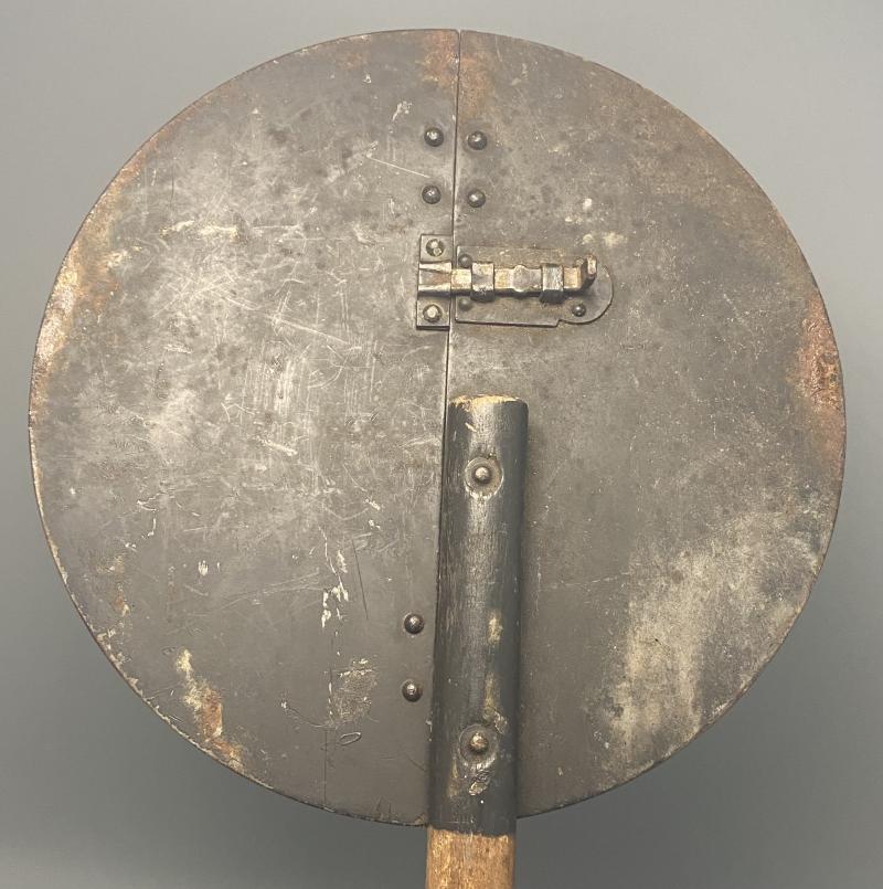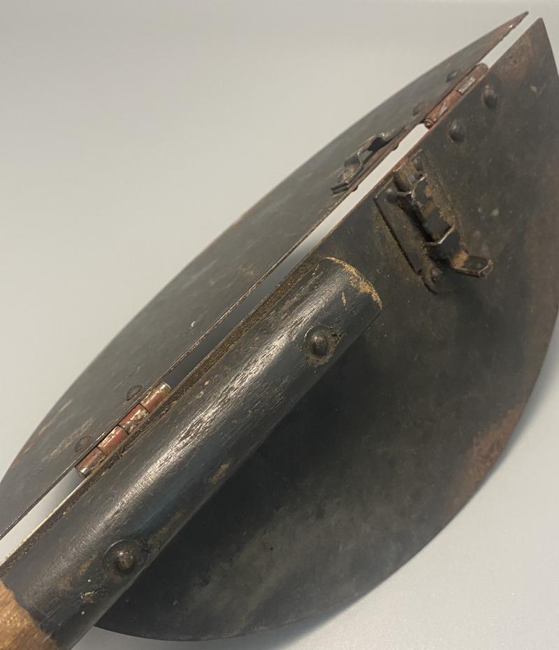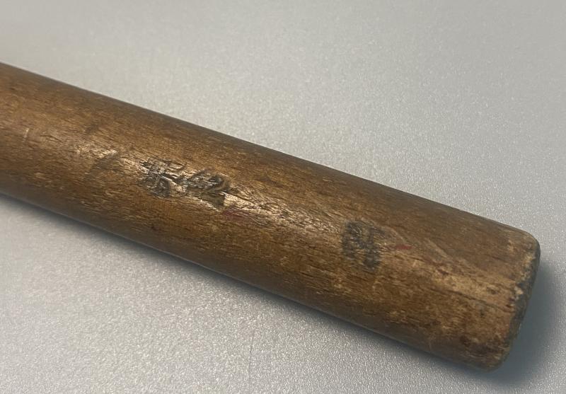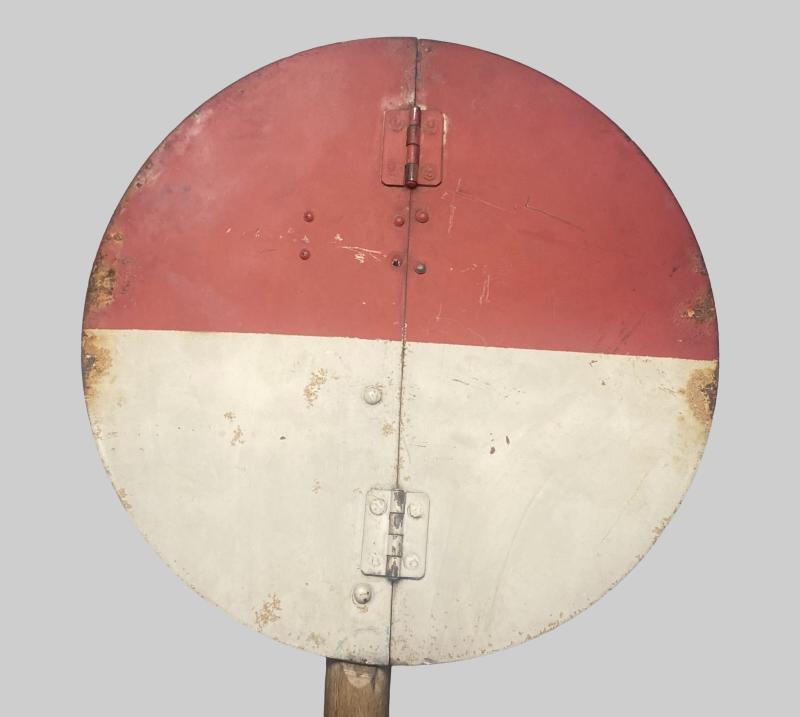 Original German army traffic signal stick as carried in most troop transport motor vehicles and staff cars. This stick is in superb original condition with its grooved wooden handle and metal hinged disc painted red and white. The original sliding lock is present on the reverse which opens and shuts the paddles. Nice untouched piece with its period paint. Lower part of the stick marked 42 for the production year, the factory code before it appears ineligible. A faint black ink WaA mark sits around 3cm from the bottom of the handle. A rare piece of equipment.