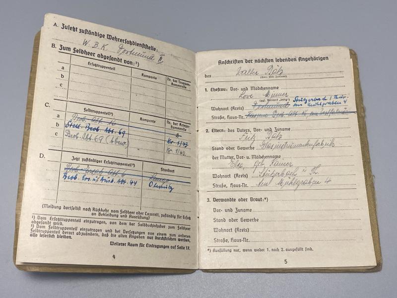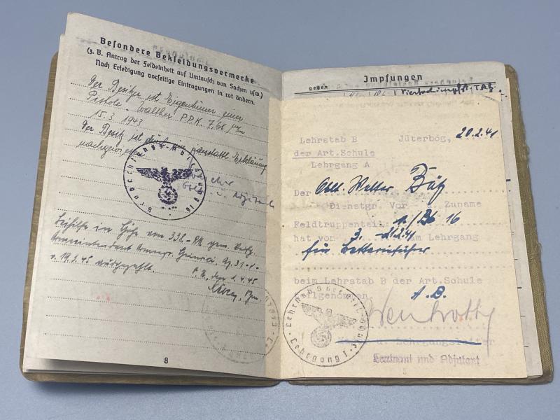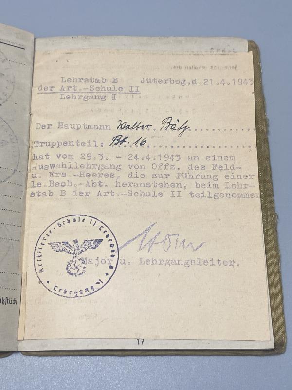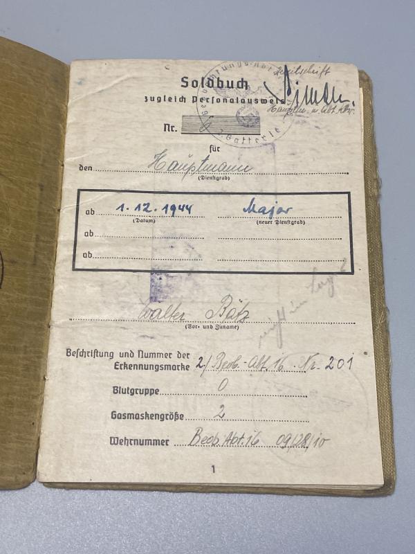 German Army Soldbuch Major. Walter Bätz Beob.Abt.16 Artillery Listening Unit