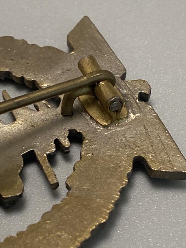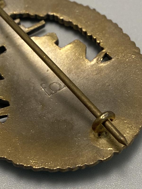 Original KM High Seas Badge made by F.O. Some wear to the golden finish around the eagle and higher end of the oak leaves, the lower leaves have most of the original golden finish. In good overall shape, nice makers mark on the reverse and no repairs.