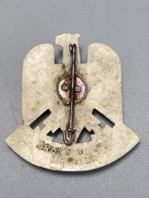 Original early plastic HJ day badge. Made by Bruno Mulde of Bremen. Complete with original pin in place.