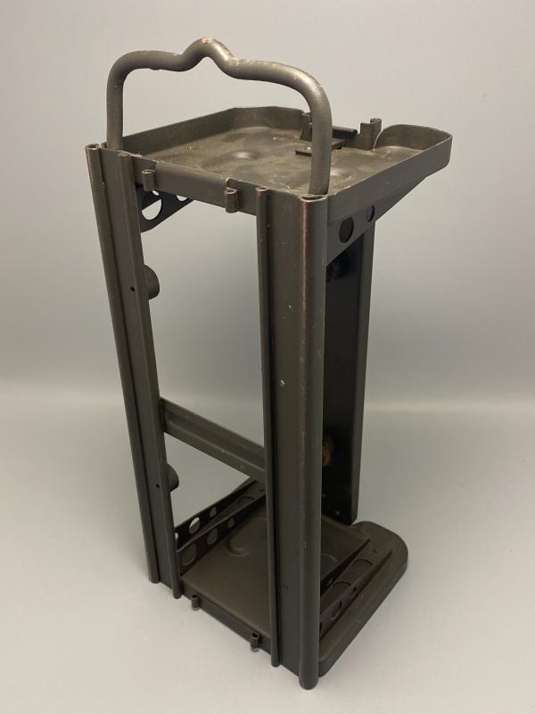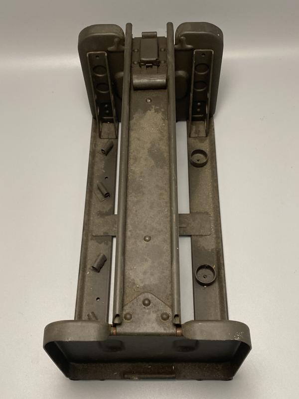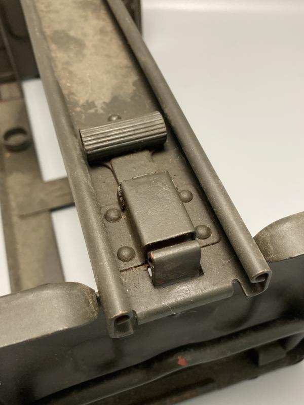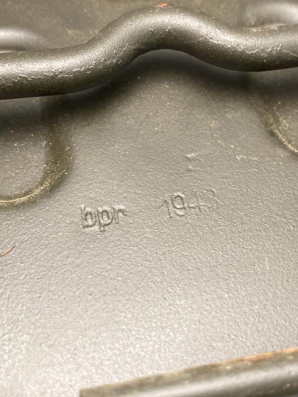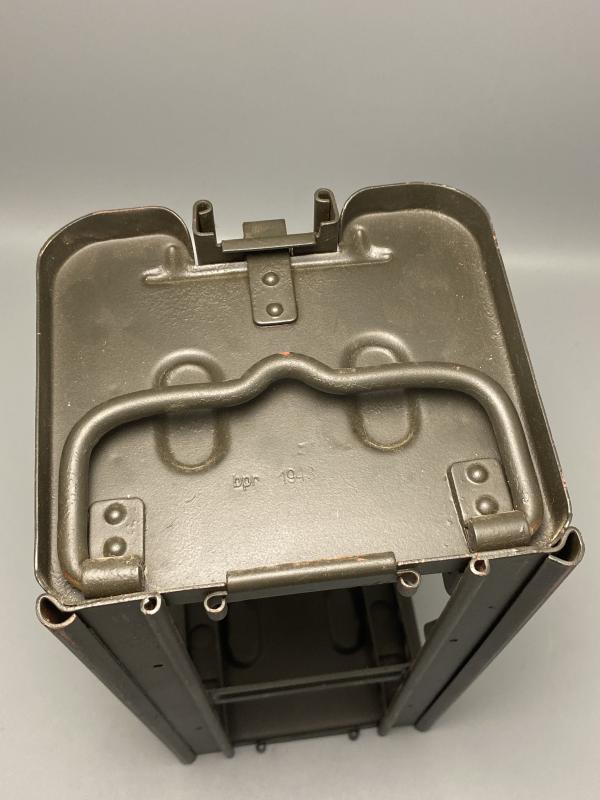 Original German Gurttrommel basket ammo carrier for machine guns. Gurttrommel has a dark green finish with heavy layers of dust on top. Maker marked bpr 1943. In very good condition.
