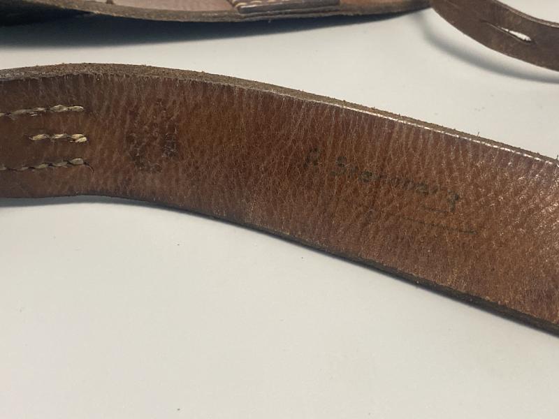 Original German army leather Y Straps dated 1942 and named P.Steinberg in ink. Straps in great condition, nice and soft leather with no repairs or damage. A really nice example.