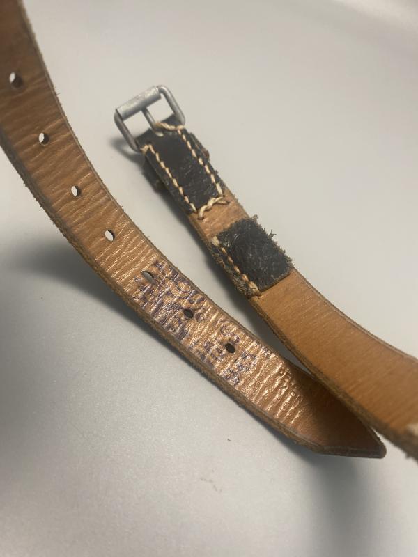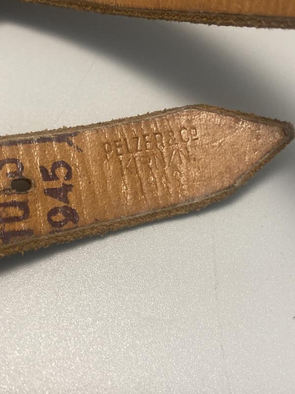 Original German zelt strap maker marked Pelzer & Co and dated 1942. In unissued condition. Post war Czech stamps also present.