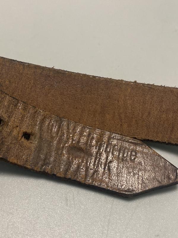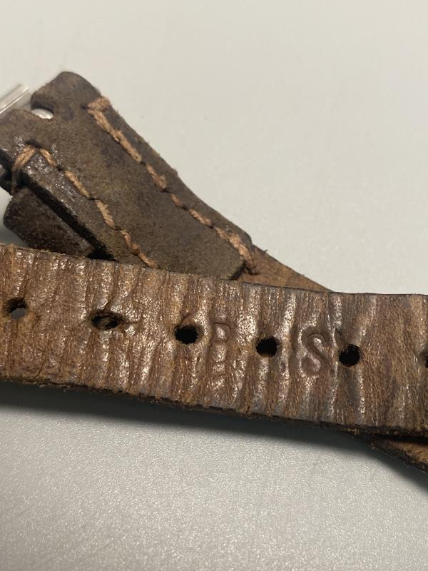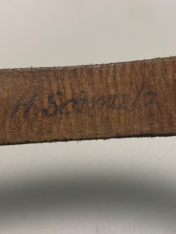Original German Airforce LBA marked equipment strap named to a soldier, surname Schmitz. Faint makers mark at the end with probable 1942 date. Good used condition.