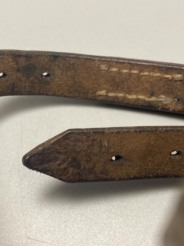 Original 1944 dated and coded German army black leather equipment strap. In good used condition.