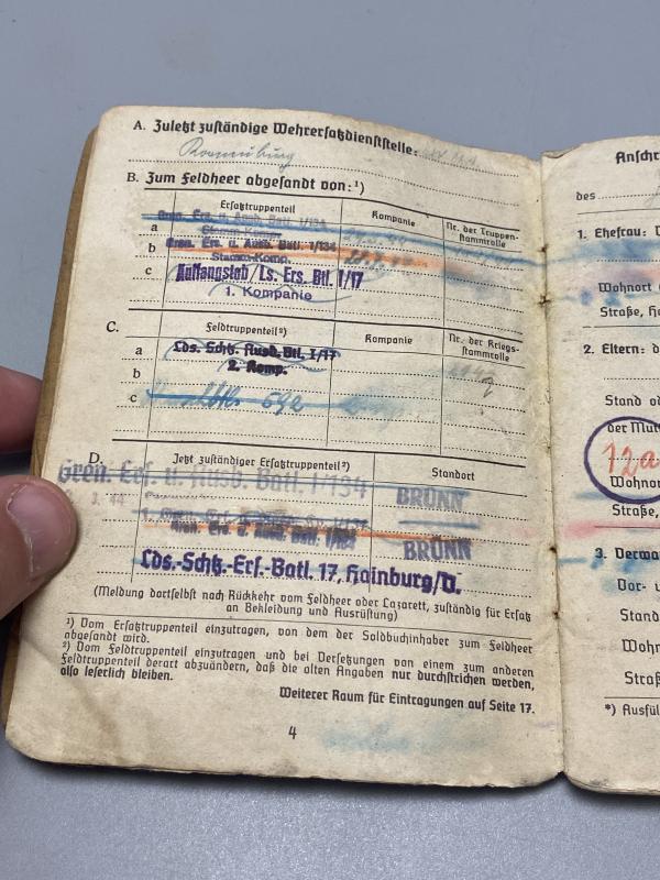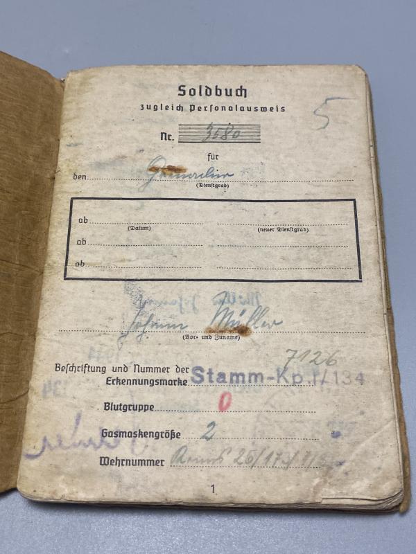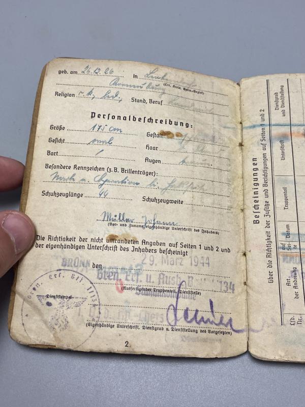 German Army Soldbuch Grenadier Johann Müller Gren.Ers.U.Ausb.Batl.134