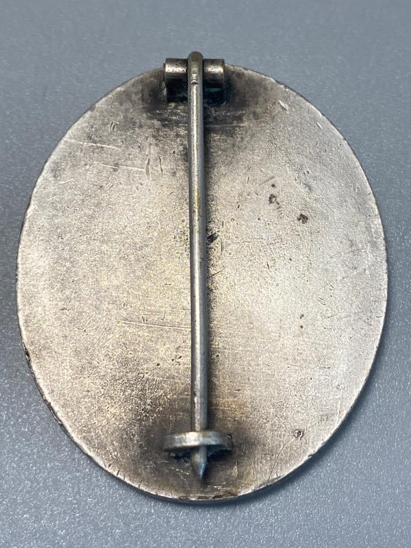 Original unmarked Tombak silver wound badge likely produced by Gustav Brehmer. Nice award with a good amount of silver wash finish retained.