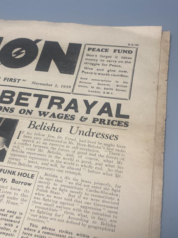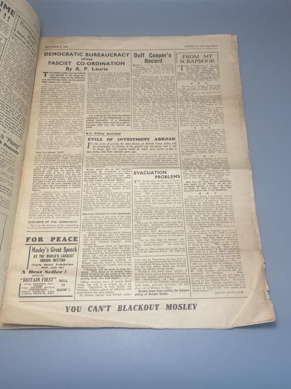 British Union Of Fascists “Action” Newspaper Dated November 2, 1939 Issue 192