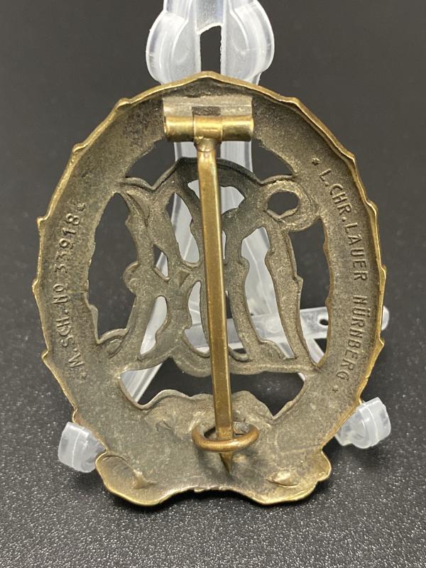 Original early pre war DRA bronze grade sports badge made by Lauer of Nürnberg. In good condition.