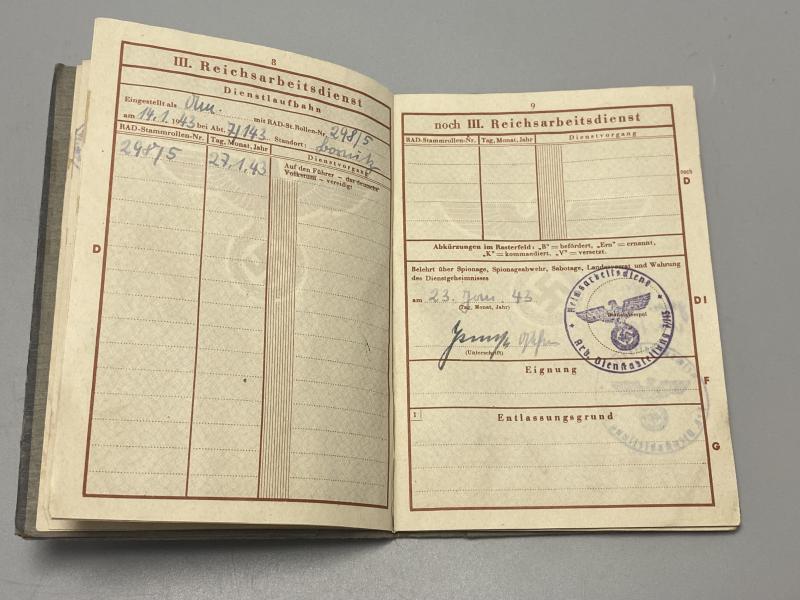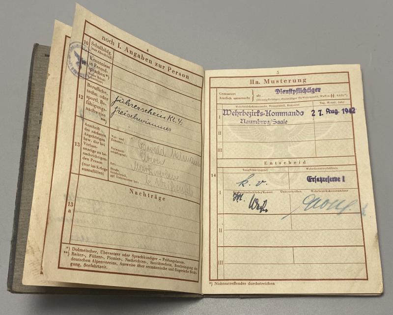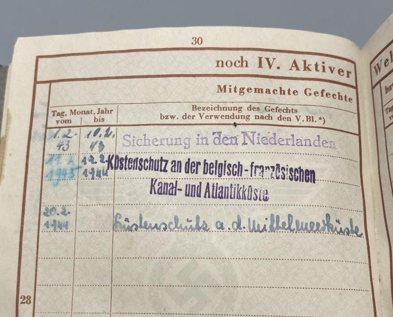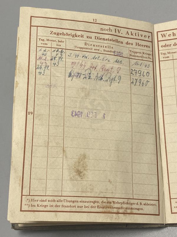 This is a truly superb Wehrpass, issued to one of Hitlers elite with good Normandy history. Whilst no entries are marked after February 1944, Heimann’s name does not appear in any casualties lists and with the provenance of the book coming directly from a veterans family, we can only at best assume the most likely which is his continued service with the 9th SS Pz Div until his capture in late summer 1944. The Wehrpass is in very good shape, some minor staining evident with expected service wear to the cover.