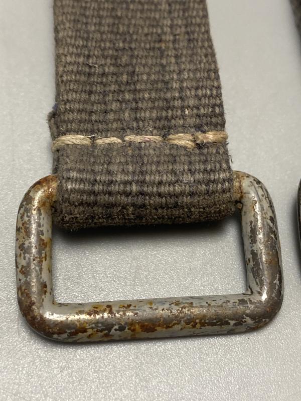 Original pair of rare blue canvas Luftwaffe D-Rings. In good condition with blue paint still present on the buckles.