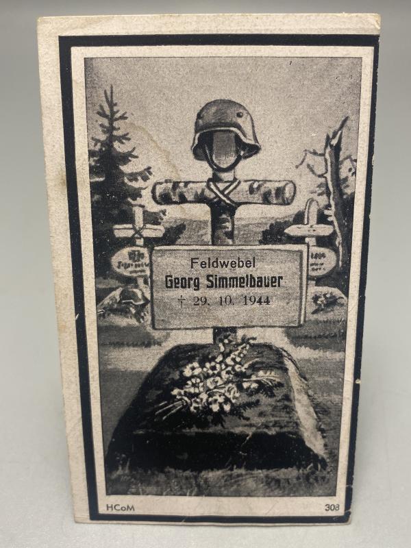 German Army Death Card Georg Simmelbauer Feldwebel Lenelin 1944