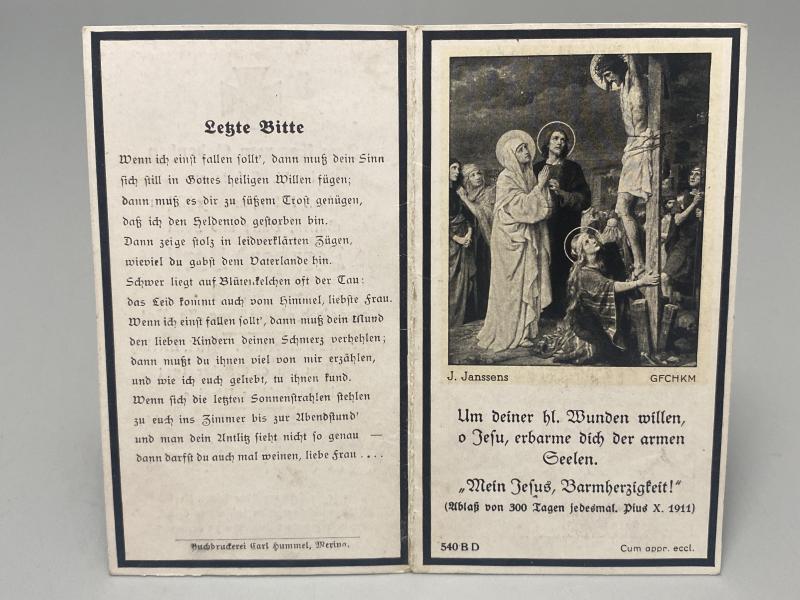 German Army Death Card Bernhard Bartl Gebirgsjager Regiment Molotschna Ukraine 1941