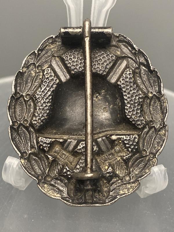 Original WW1 German wound badge in black. Top condition. Complete with factory applied pin, hinge and hook to the reverse. Unmarked example.