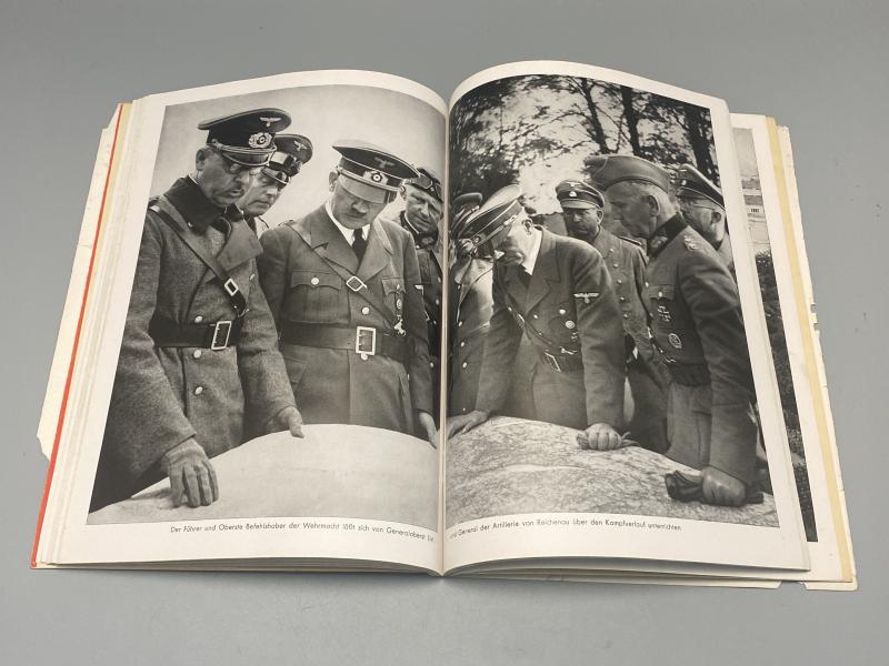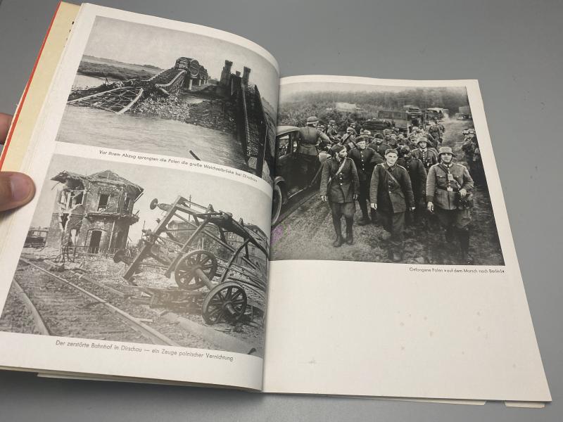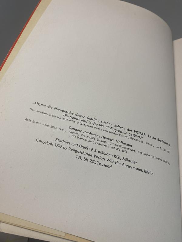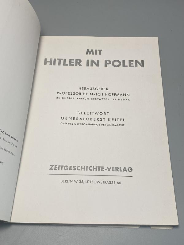 Original print of “Mit Hitler in Polen” or “With Hitler in Poland” photographs by Heinrich Hoffmann. Books pages in good condition, complete with tatty dust jacket.
