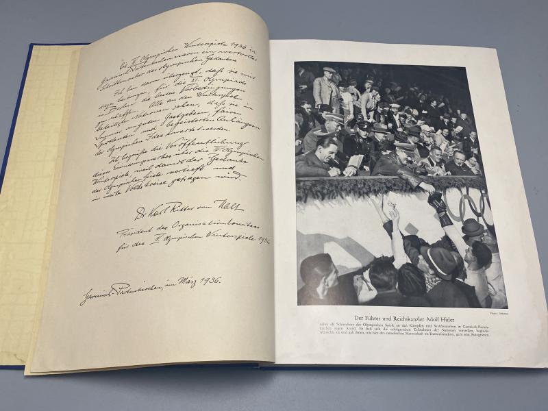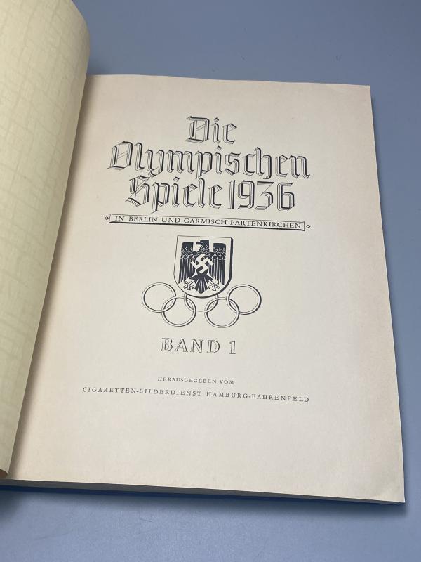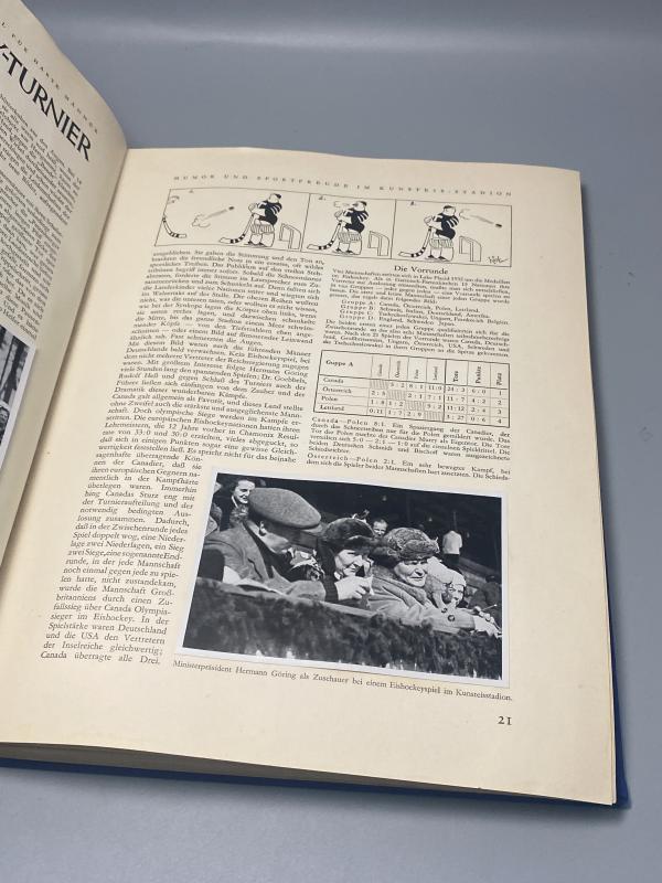 Original Third Reich period Band 1 Winter Olympics of 1936 collector book complete with all attached photographs. Some minor staining to the cover of the book.