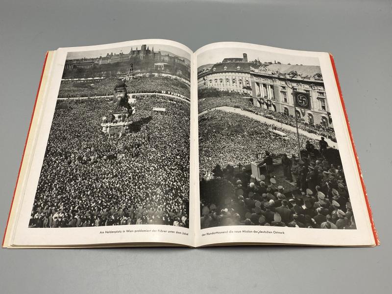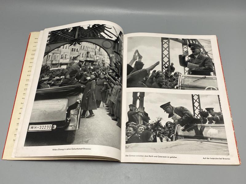 Original 1938 print of “Hitler in seiner Heimat” or translated to “Hitler in his homeland” (Austria post annexation). Books photos produced by Heinrich Hoffmann. In good condition, complete with dust cover.