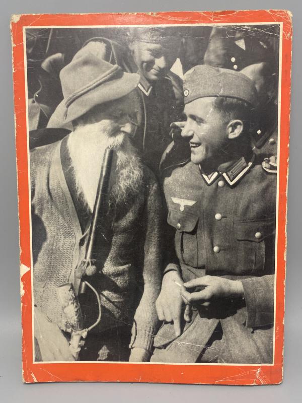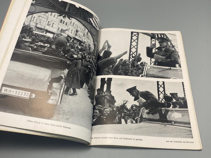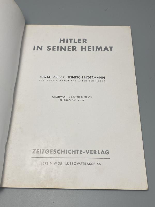 Original print of “Hitler In Seiner Heimat” or translated “Hitler in his homeland” printed 1938 with photos by Heinrich Hoffmann. Book inside in good shape with tatty dust cover.