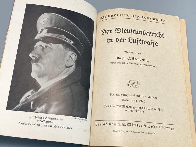 Original 1940 issue of the Luftwaffe Serviceman’s Handbook. In good condition, all pages present. Printed in Berlin. Outer paper of the book protected from damage using lamination. This has been done many years ago and cannot be removed.