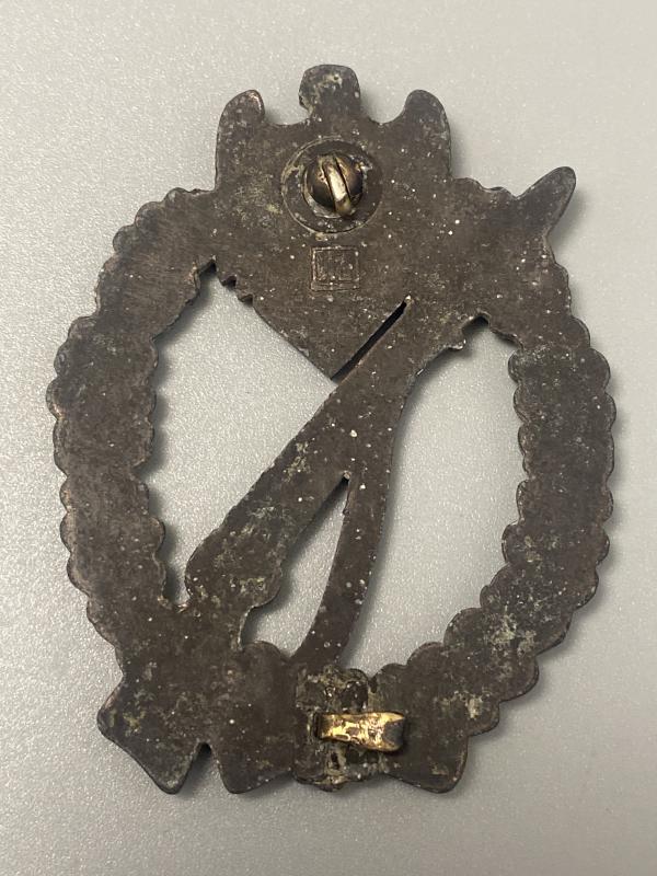 Original ground dug JFS manufactured Infantry Assault Badge. In reasonably good shape, no pin on the reverse. Hook remains in place.