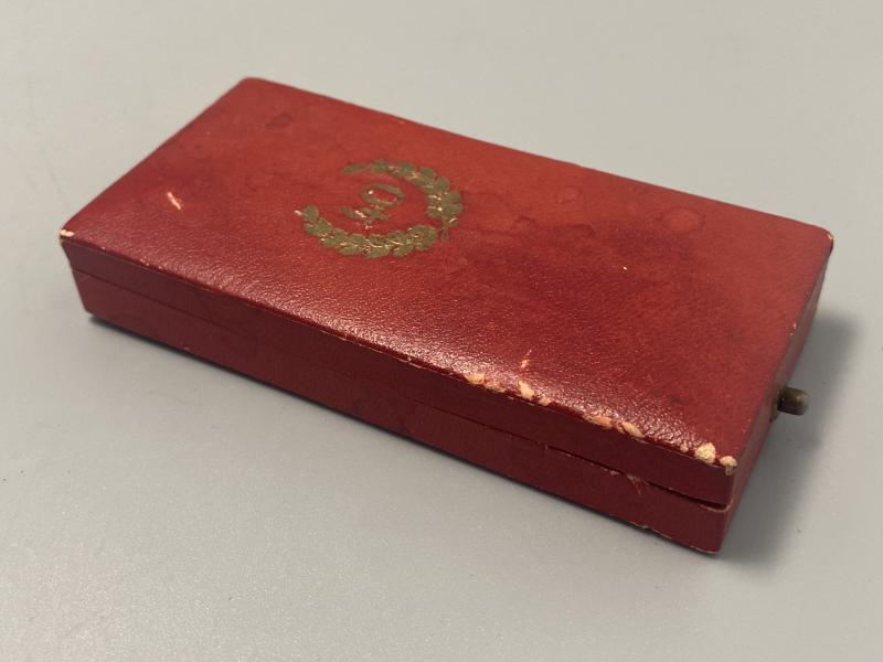 Original Third Reich 40 year service medal complete with box of issue. Made by Deschler & Sohn. Award in good condition with high enamel finish. Some wear to the outside of the box.