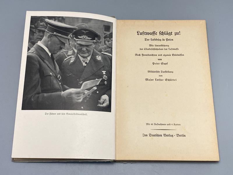 Original 1939 print of “Luftwaffe Schlägt Zu” which covers the German airforce battles over Poland. Book was previously the property of 2. Sturzkampfgruppen Kommando.