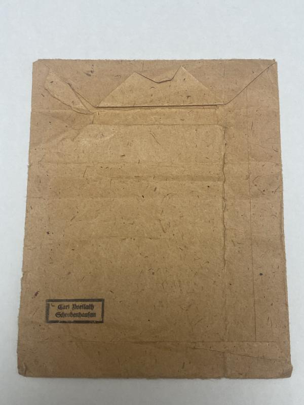 Original KVK2 award with packet produced by Carl Poelath. Award made of Tombak with no makers mark. Award has a misshaped ring, likely from previous mounting. Packet stamped with the factory name on the reverse.