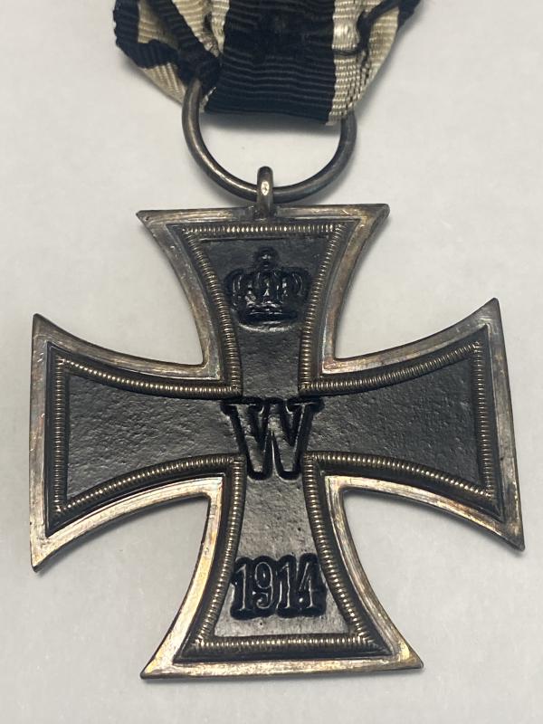 Original WW1 German Iron cross second class maker marked SW for S.Wagner of Berlin. Award complete with ribbon.